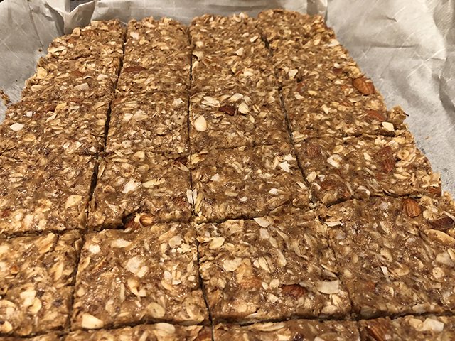 Cover, and transfer to the refrigerator for at least 1 hour, or overnight. This allows the liquid to be absorbed into the oats, and the bars to set.