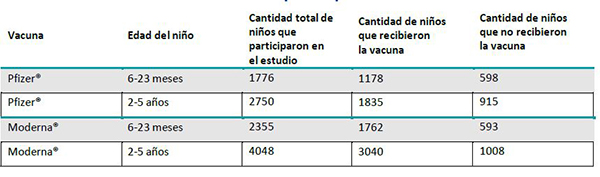 La vacuna de Moderna® recibió aprobación y se recomienda para niños de 6 meses a menos de 6 años. La vacuna de Pfizer® ya había recibido aprobación y se recomienda para niños de 5 años en adelante y adultos.